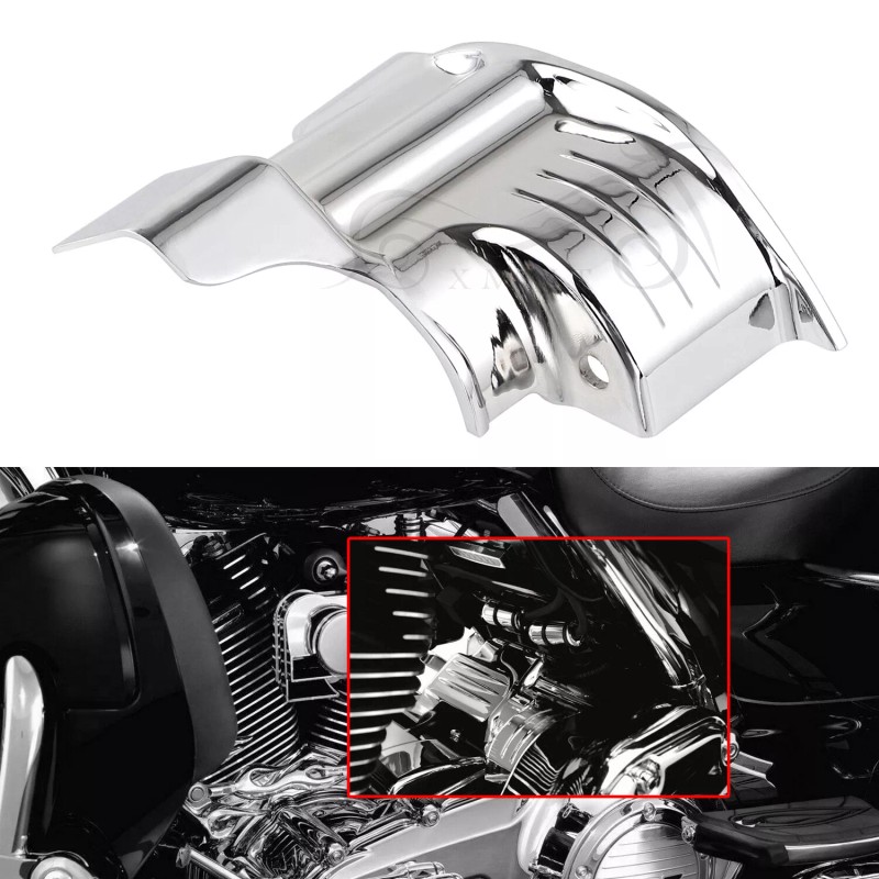 Chrome-plated Starter Mount Cover completely dresses up the exposed starter on ’09-’16 Touring Models.