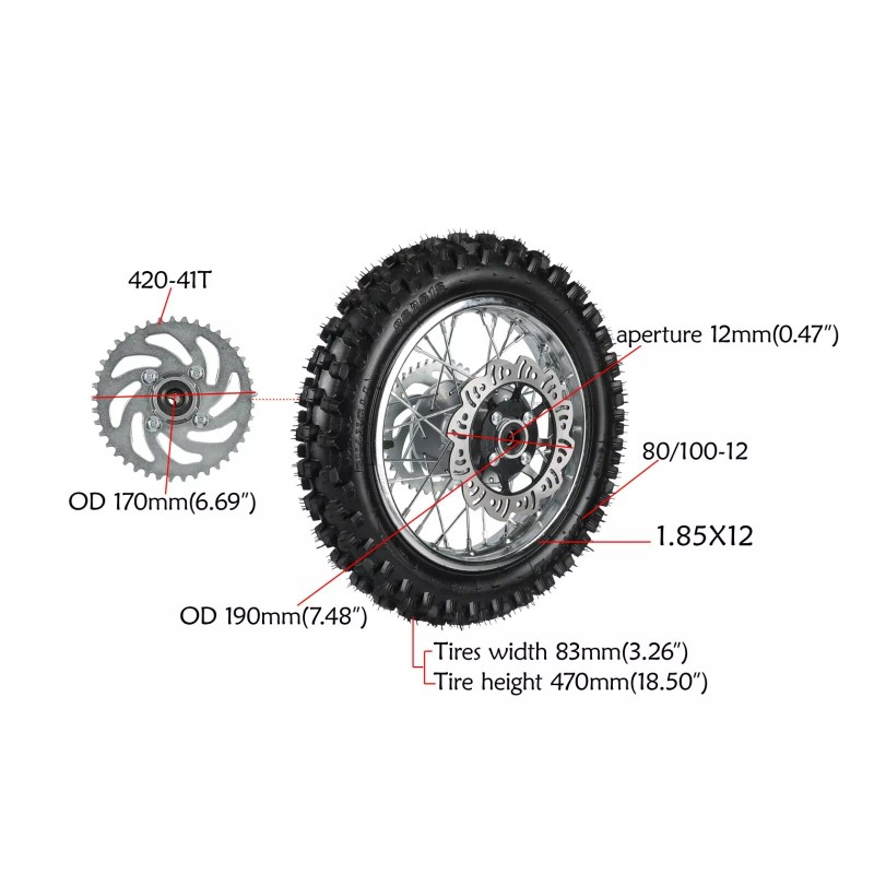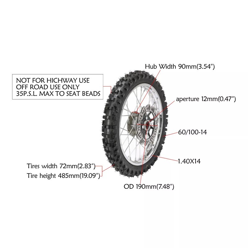 Unbranded MX Off Road Front 60/100-14 Rear 80/100-12 Motocross Tyre Rim Wheel Combo