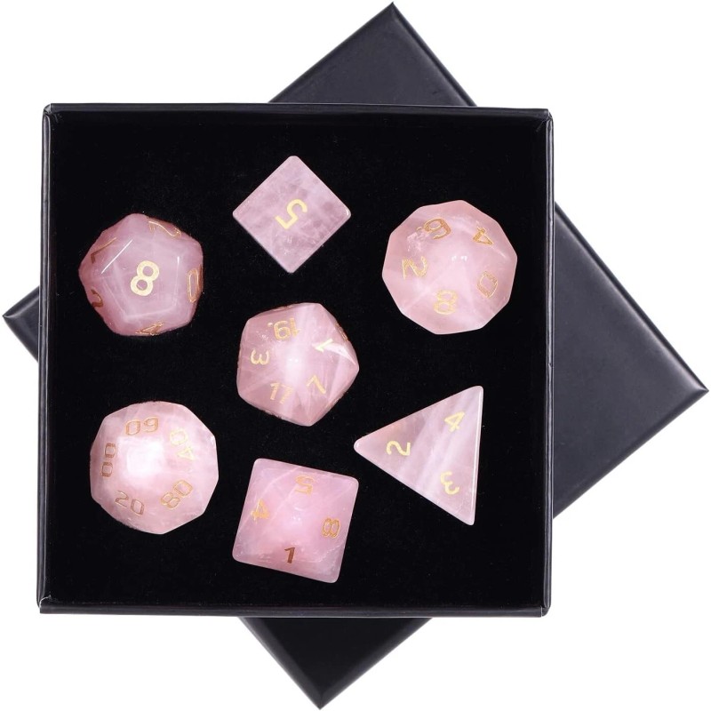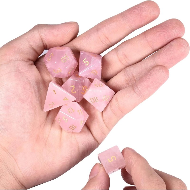 Unbranded Natural Rose Quartz 7 PCS Polyhedral Dice for RPG Gaming & Crystal ...