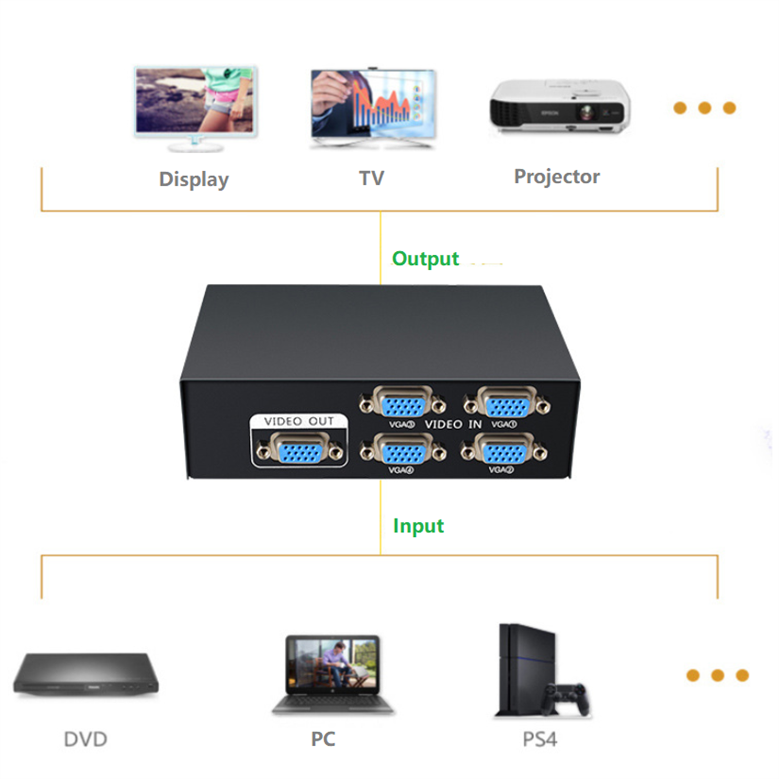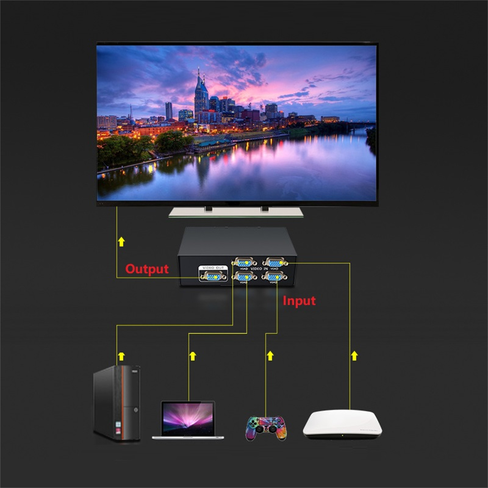 4x1 VGA Switch 4 Port VGA Switch Video Selector Switcher Box 4 In 1 Out VGA Switcher