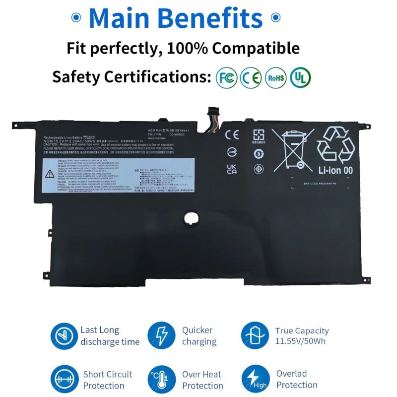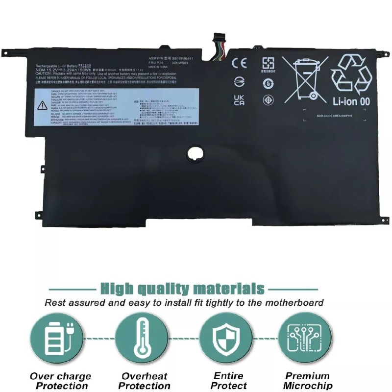 Unbranded New 50wh 00hw003 00hw002 Battery For Lenovo Thinkpad X1 Carbon Gen 3 Series 2015