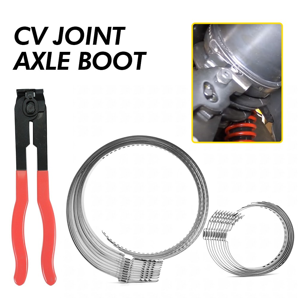 This product is a CV Joint Boot Clamps kit, which is made of high-strength steel and is sturdy and durable. You can use this CV Joint Boot Clamps to complete the fixation of the half-shaft dust cover and other hoses.
