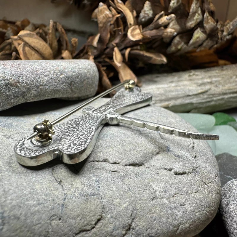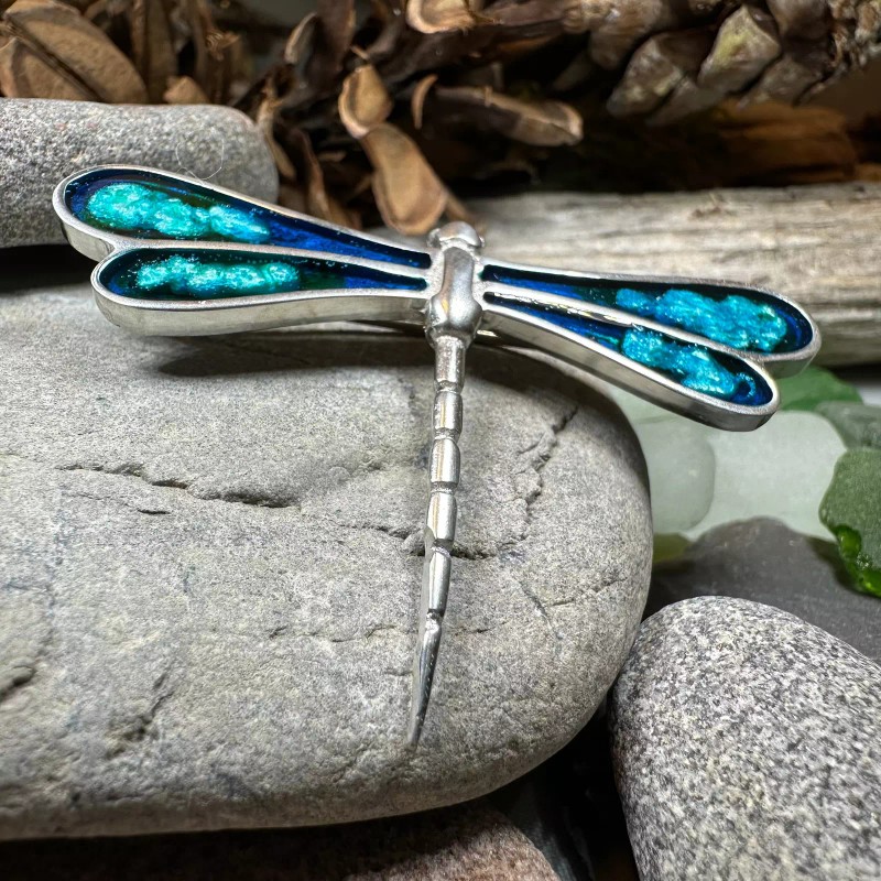 Beautiful solid pewter dragonfly brooch with stunningly colorful wings - a wonderful symbolic gift for someone you love, or for yourself.