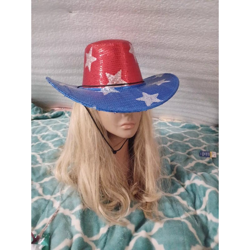 Unbranded New RWB Sequin Cowboy Cowgirl Red White Blue Stars Patriotic LightUp America Hat