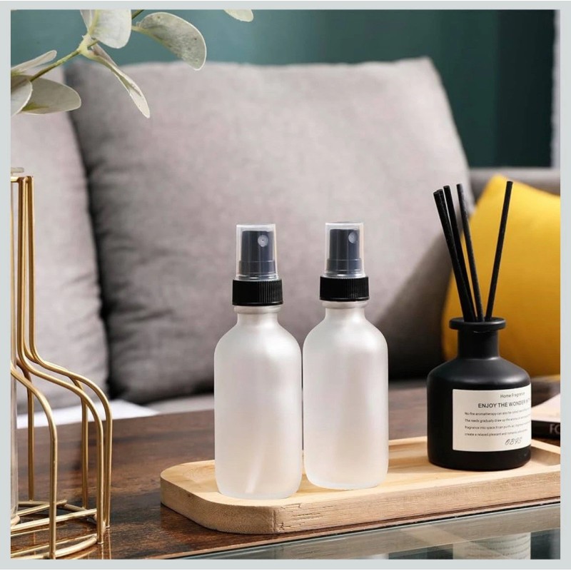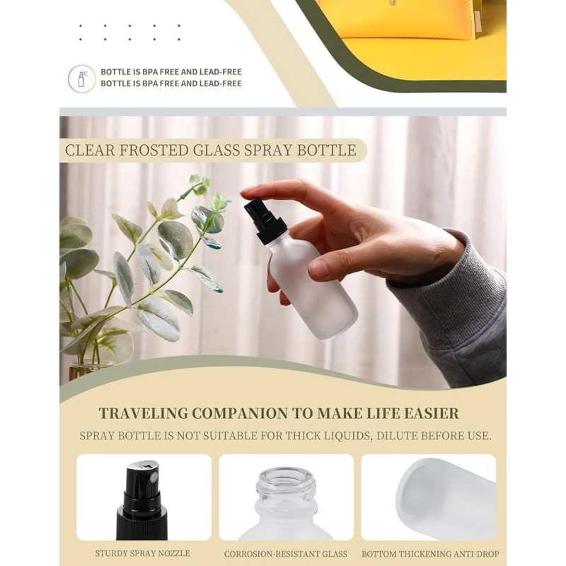 spray bottles, frosted glass bottles, refillable spray container, travel spray bottles, 2 oz glass bottles, perfume spray bottle, essential oil spray bottle, DIY spray bottle, refillable atomizer, plant mister, frosted glass sprayer, portable spray container, travel toiletries, face mist bottle, rose water sprayer, small spray bottles, BPA free spray bottle, reusable spray bottles, clear frosted spray bottle, black top glass spray bottle, leak proof glass bottle