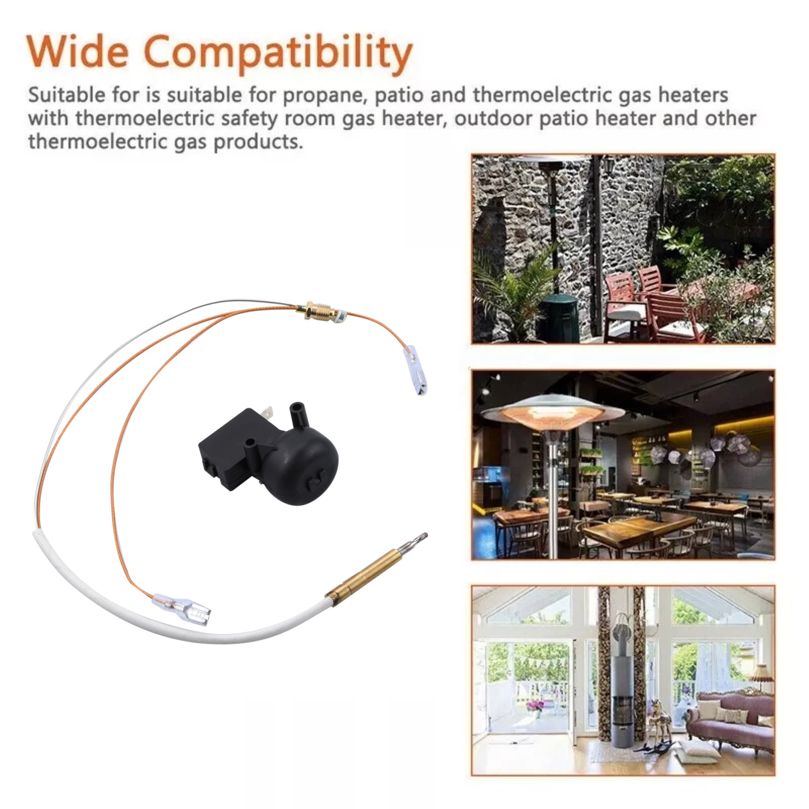 Efficiently Solves Gas Heater Issues: Our thermocouple and tilt switch kit is specifically designed to address common problems in gas heaters, such as propane patio heaters and outdoor standing patio heaters. When your heater experiences difficulties in igniting, flame instability, or failure to stay lit, this kit quickly identifies and resolves faults in the temperature sensor or tilt switch.
