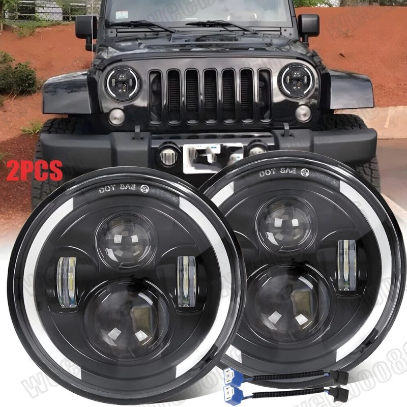 Unbranded Newest Pair 7" Round LED Headlights Hi/Lo Beam H4 For Jeep Wrangler JK TJ CJ LJ