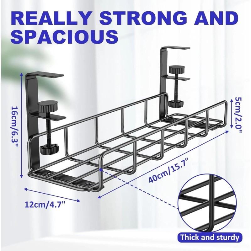 • No-Drill Adjustable Under Desk Cable Management Tray
