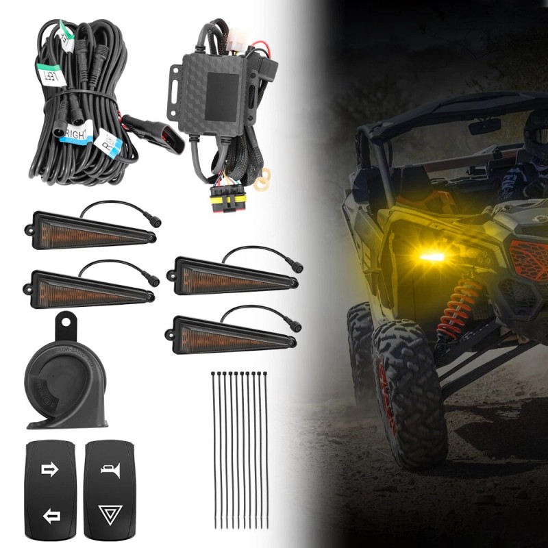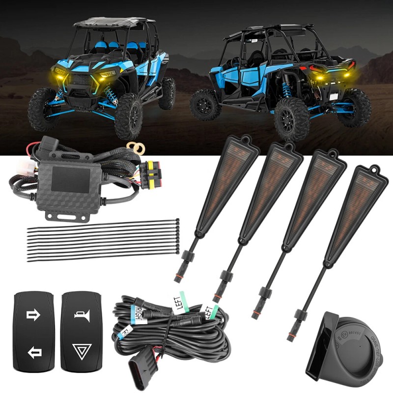 UTV/ATV Turn Signal Kit - Plug & Play LED Lights with Rocker Switch, 110dB Horn, Universal Turn Signal Assembly Compatible With Polaris Can-Am Kawasaki CFMOTO