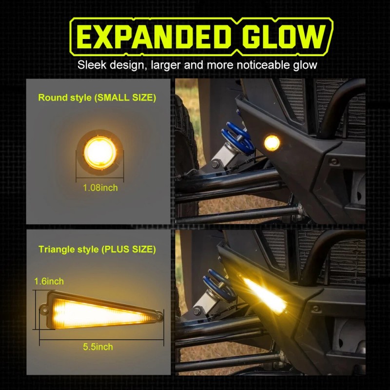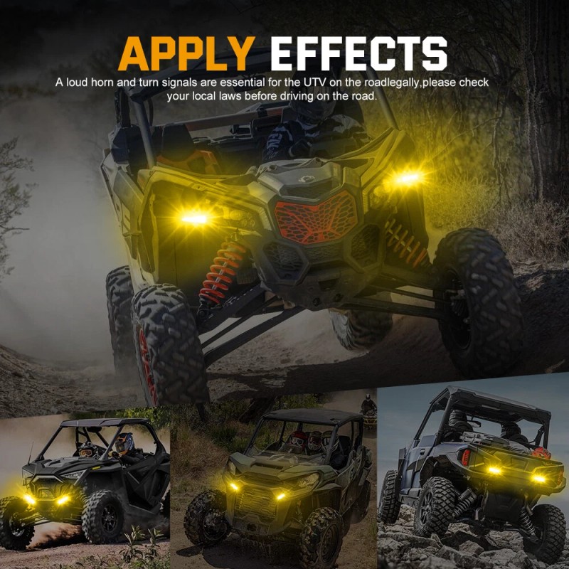 - High-Visibility Amber Lights: The UTV turn signals feature scientifically optimized amber lighting with superior penetration. Clearly visible in heavy rain and dense fog, they provide long-range warning to surrounding traffic for enhanced safety