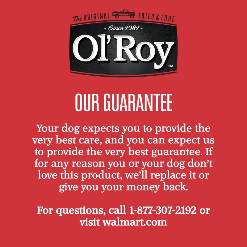 • Today, Ol' Roy continues to be a symbol of dependability, giving you peace of mind that you are providing your dog with quality food for a happy life.If for any reason you or your pet don't love this product, we'll replace it or give you your money back.