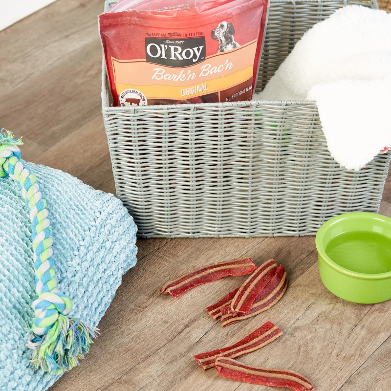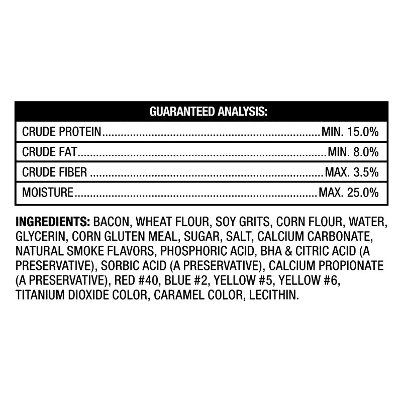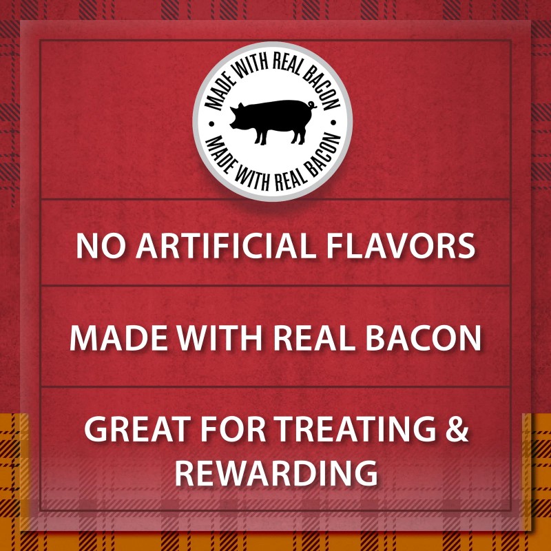 • Ol' Roy Bark'n Bac'n Original Dog Treats feature real meat as the number one ingredient, and every delectable bite is packed with bacon-flavored goodness for a beg-worthy snacking experience for your pup.