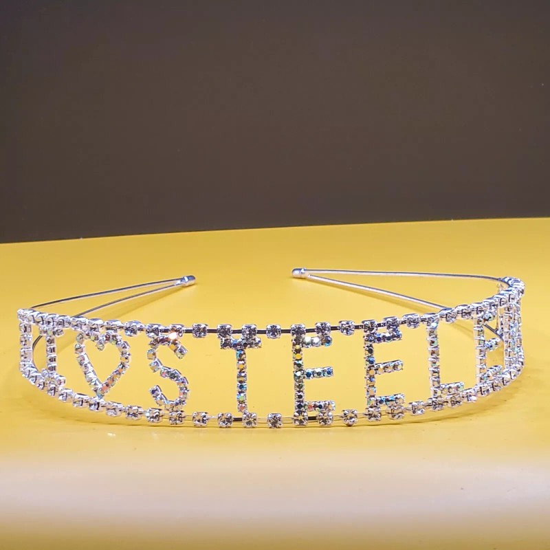 One Dozen Custom Made I Love Steelers Rhinestone Headbands Wholesale.