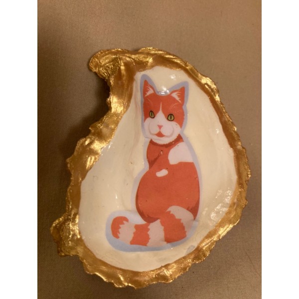 Unbranded Orange white Ginger kitty Cat Decorative Oyster Shell Jewelry Ring Trinket Dish