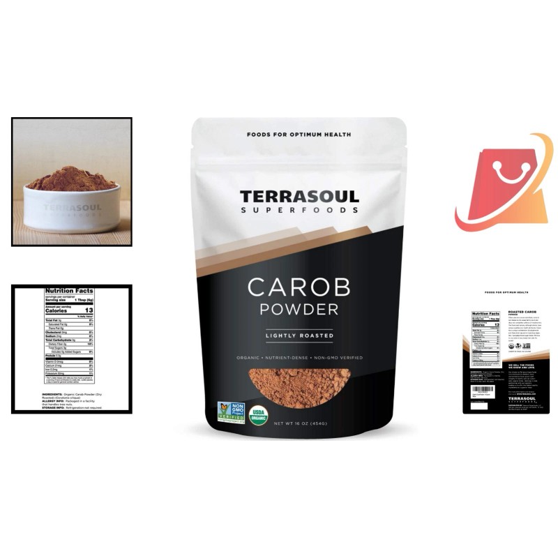 Organic Carob Powder 16oz - Gluten-Free Cocoa Alternative with High Fiber