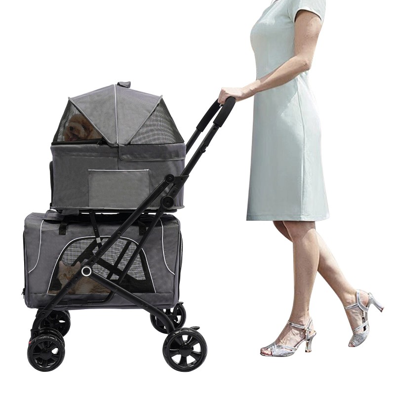 This foldable pet cart is a handy assistant in your life. It can easily accommodate small and medium-sized dogs and cats, and can also be folded into a smaller size for easy storage. It is mainly made of high-quality iron and Oxford cloth, which is safe and reliable. Whether you are out for a walk with your puppy or shopping at the mall, it will meet your needs. Choose one now to make life easier and more convenient!