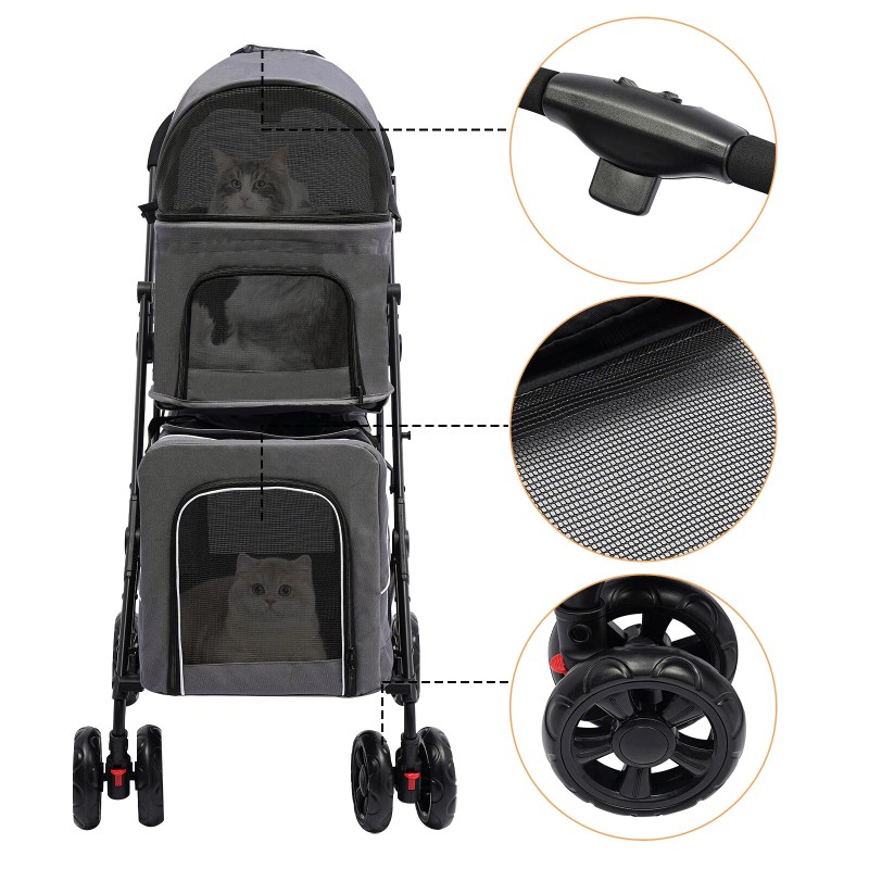 Powerful Function:It allows pets to enjoy the great outdoors and fresh air. In addition, it can not only be used as a stroller to push your pet out of the house, but you can also remove the carrying basket separately to use it for multi-purpose. The side storage pockets of the carrying basket are convenient for carrying your pet's toys, snacks, or other on-the-go items.