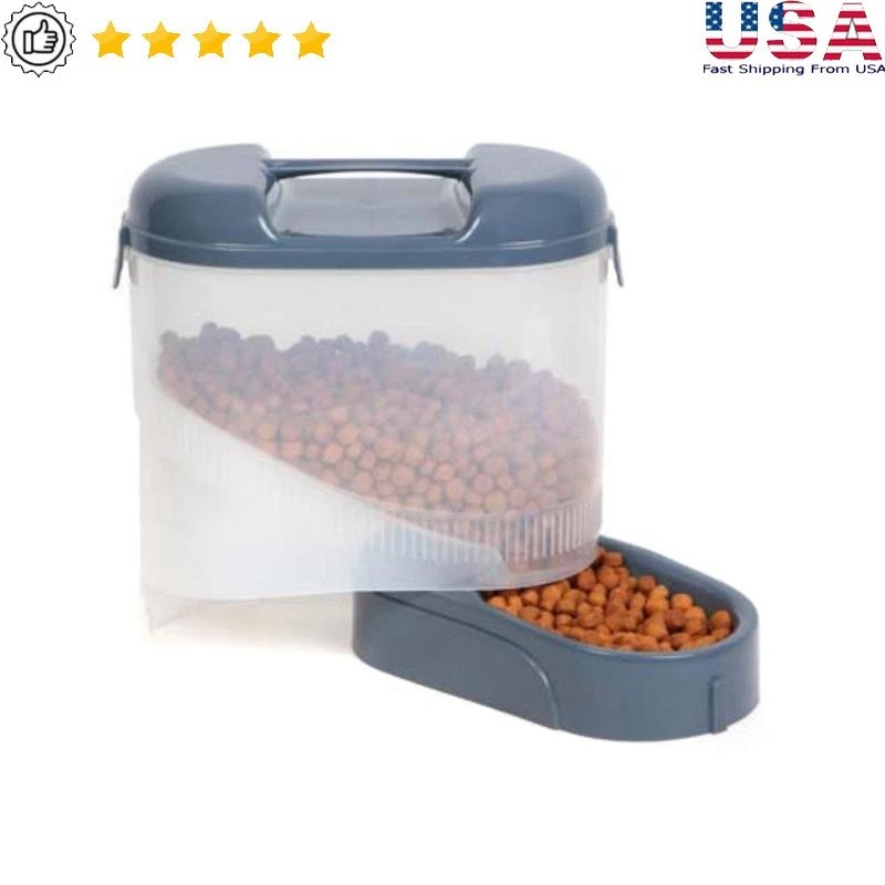 Travel pet feeder with smooth auto-flow operation Rotating bowl can be adjusted for portion control 5-lb dry food capacity Dimensions: 11. 5" x 6. 3"