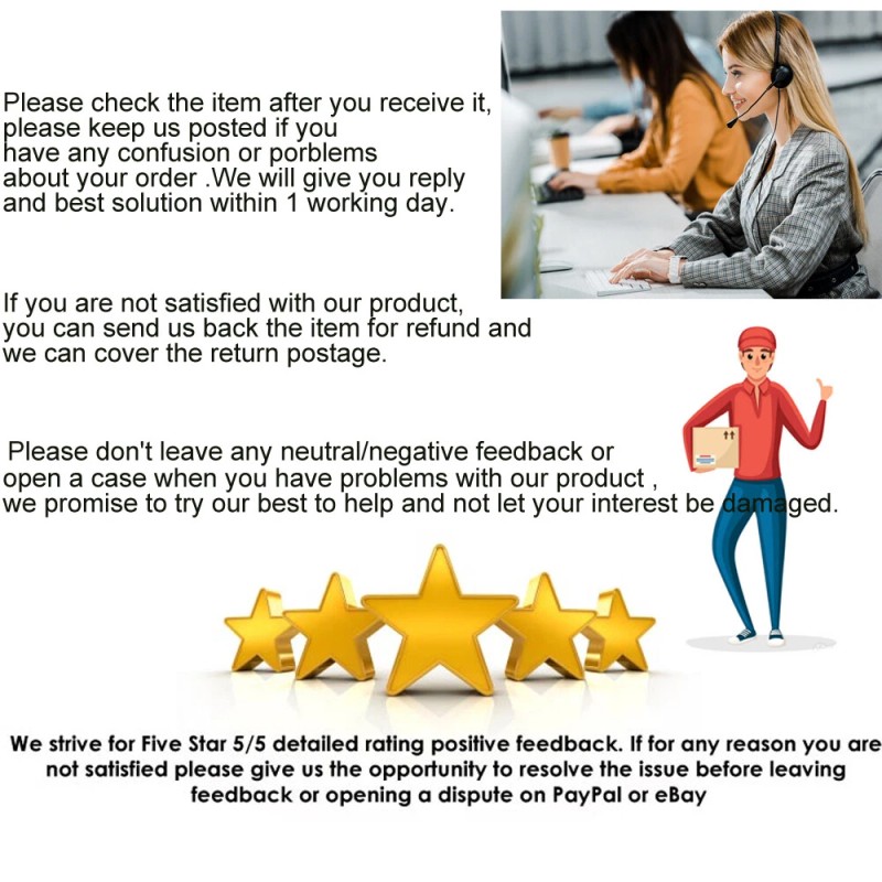 2. If you need to return the goods / or cannot find the parcel / there is a problem with the product, you can always contact us. We will do our best to solve your problem. PLEASE DO NOT OPEN "item not receive case" or "return" on ebay without communication.Thanks
