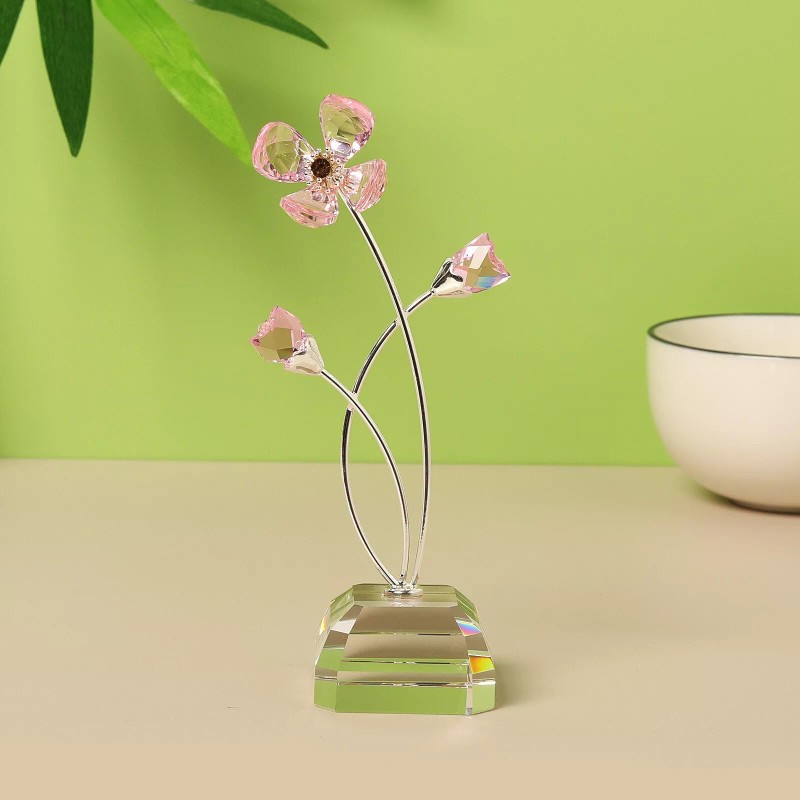 Unbranded Pink Crystal Flower Glass Figurine Ornament Paperweight Table Decoration Gift