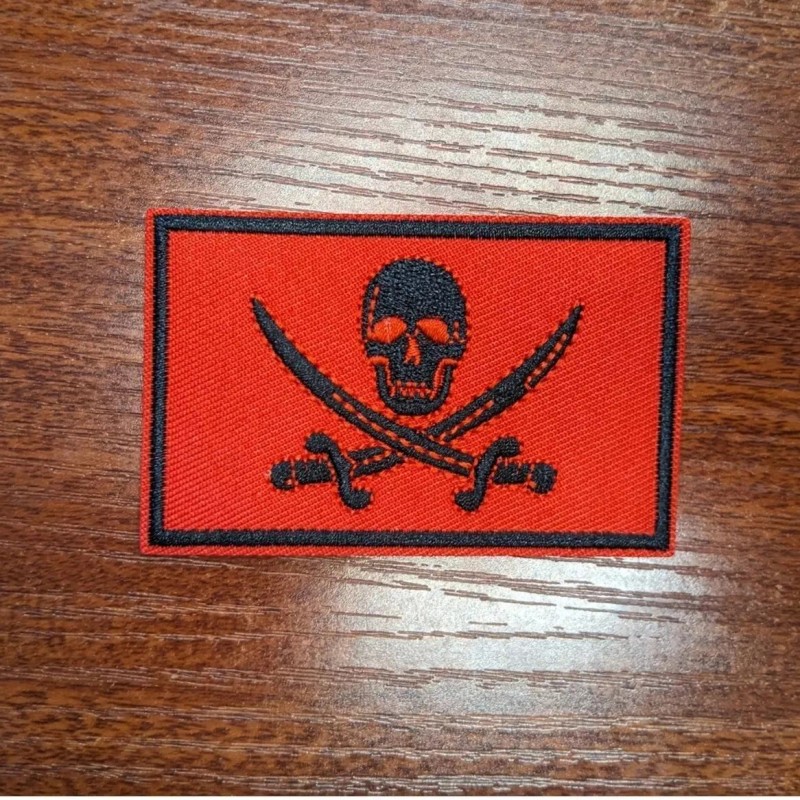 Unbranded Pirate Patch Red Flag No Mercy or No Quarter Given Embroidered Iron On 2x3.25"