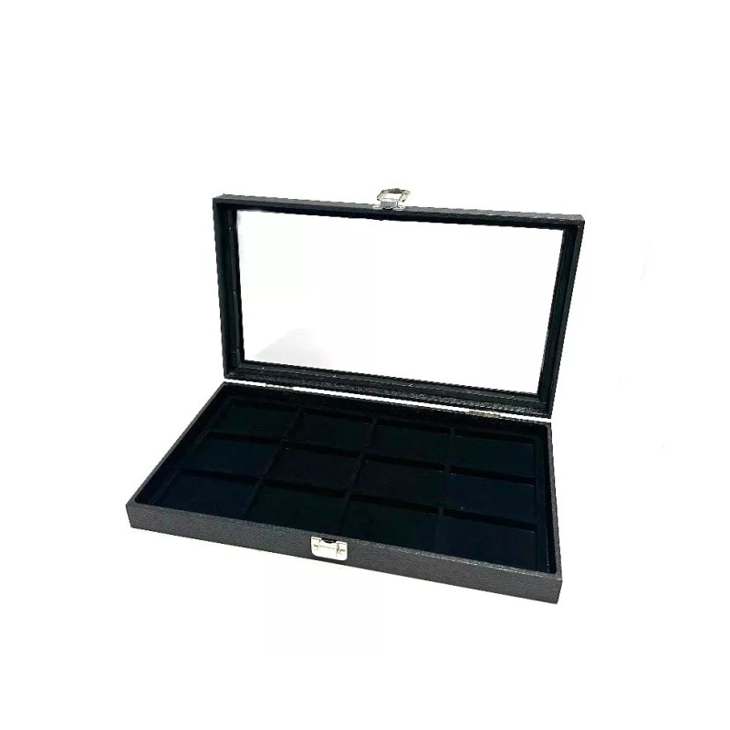 Each case comes with a black 12 space lightweight velvet flock over plastic insert.