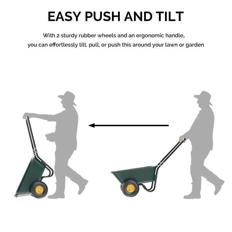 1. Quick Dump Design: The unique 2-wheel tilt mechanism and low center of gravity let you dump loads smoothly and safely, making yard cleanup faster and easier.