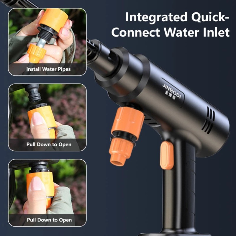 • Items Included: Battery, Charger, Water Gun Body, Adjustable Nozzle, Inlet Hose Adapter, Filter, Foam Jug, Spray Hose, Washing Hose, Tool Box