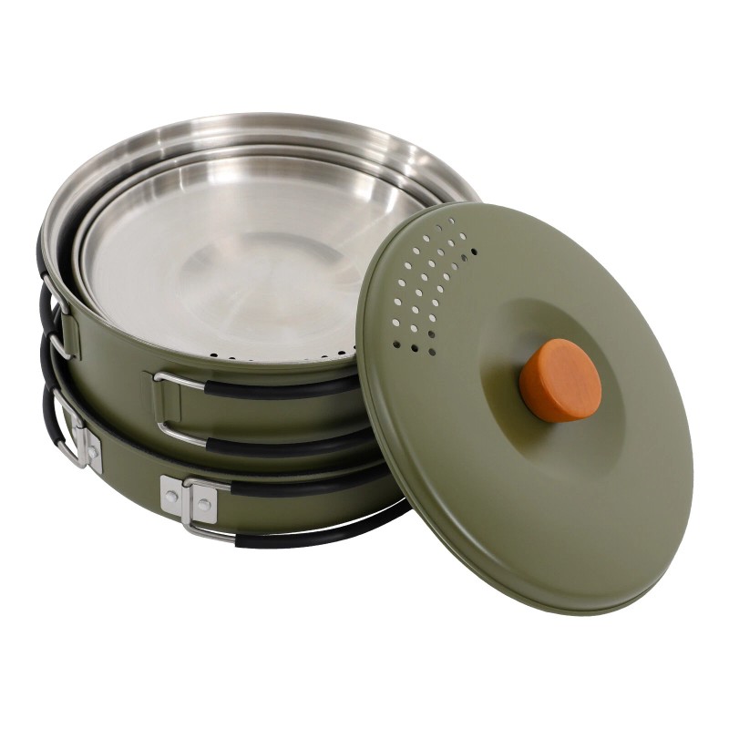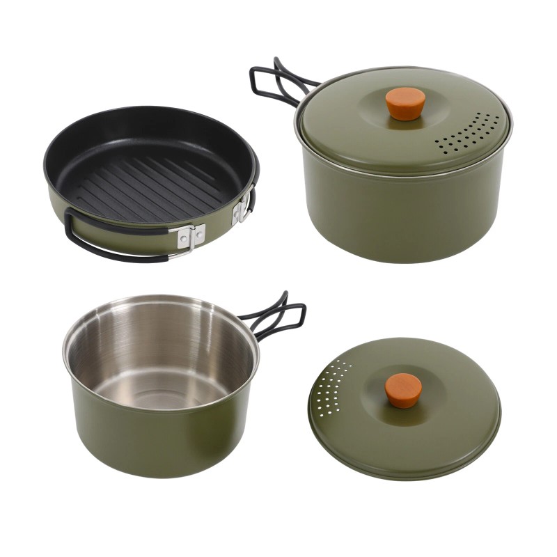 Do you need lighter outdoor travel? Our portable camping cookware set is the ideal choice for your outdoor camping. The food-grade materials ensure its safety and health. Three types of pots bring you a richer cooking experience, and they can be nested for storage, saving space and making it easy to carry. We believe it can bring you and your family and friends a pleasant outdoor experience.