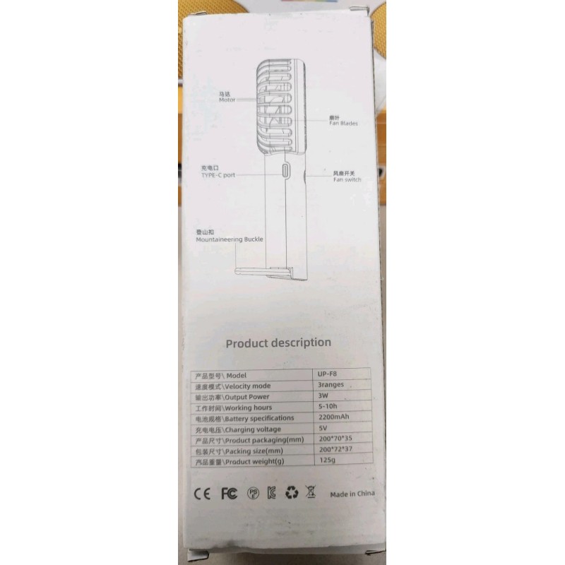 For sale is a Portable Handheld Fan, Model JP-F8. Condition is new in packaging with USB to Type C charging cable.