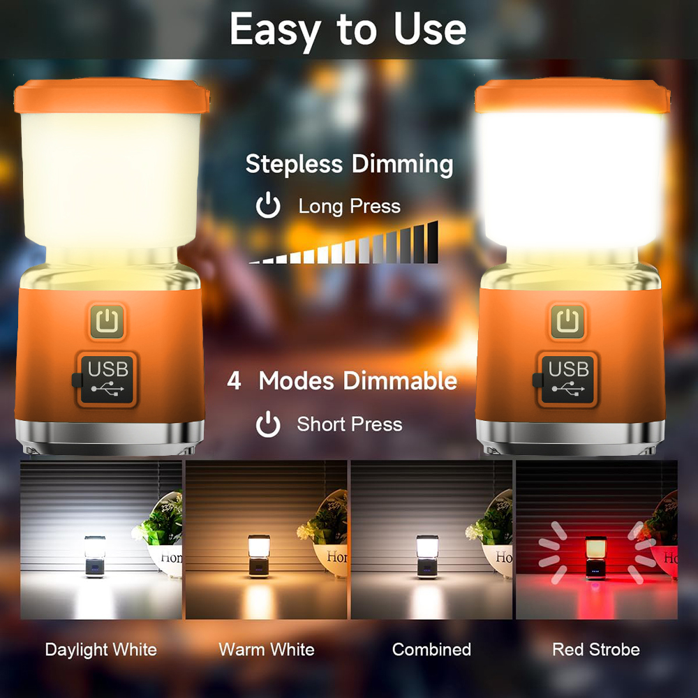 - Features: 360° Lighting Coverage, 4 Lighting Modes, Portable, Rechargeable, Waterproof