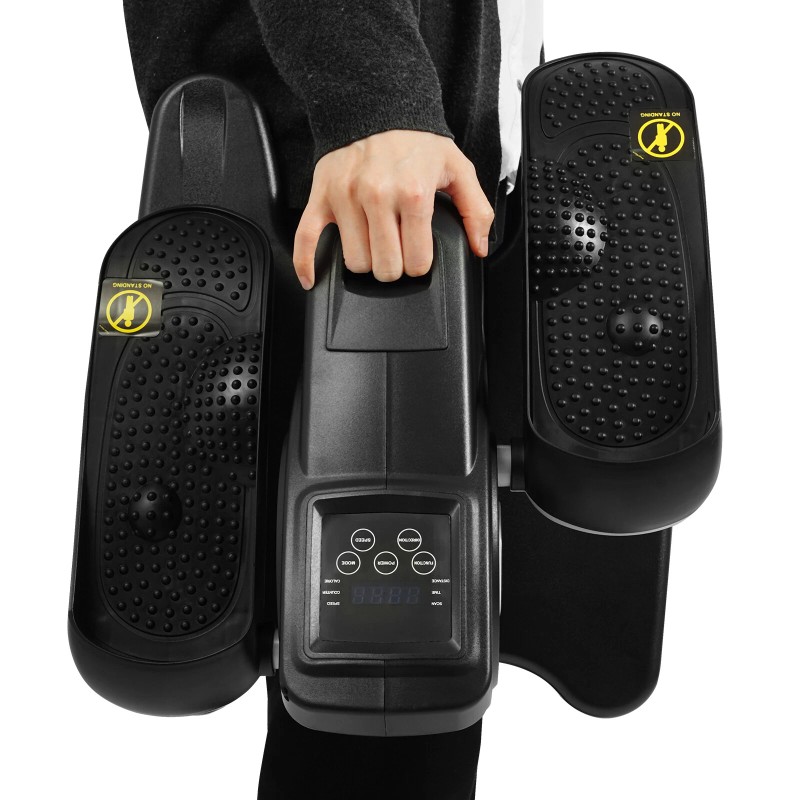 This is a multifunctional portable pedal exerciser for the legs. Its compact size makes it suitable for both home and office use. The LCD shows information such as time, counter, and speed. The anti-slip pedals and safety warning signs to ensure user safety, and remote control for easy setting adjustments. In short, it is a well-designed, fully functional, and safety-focused exerciser that can help you effectively exercise your legs.