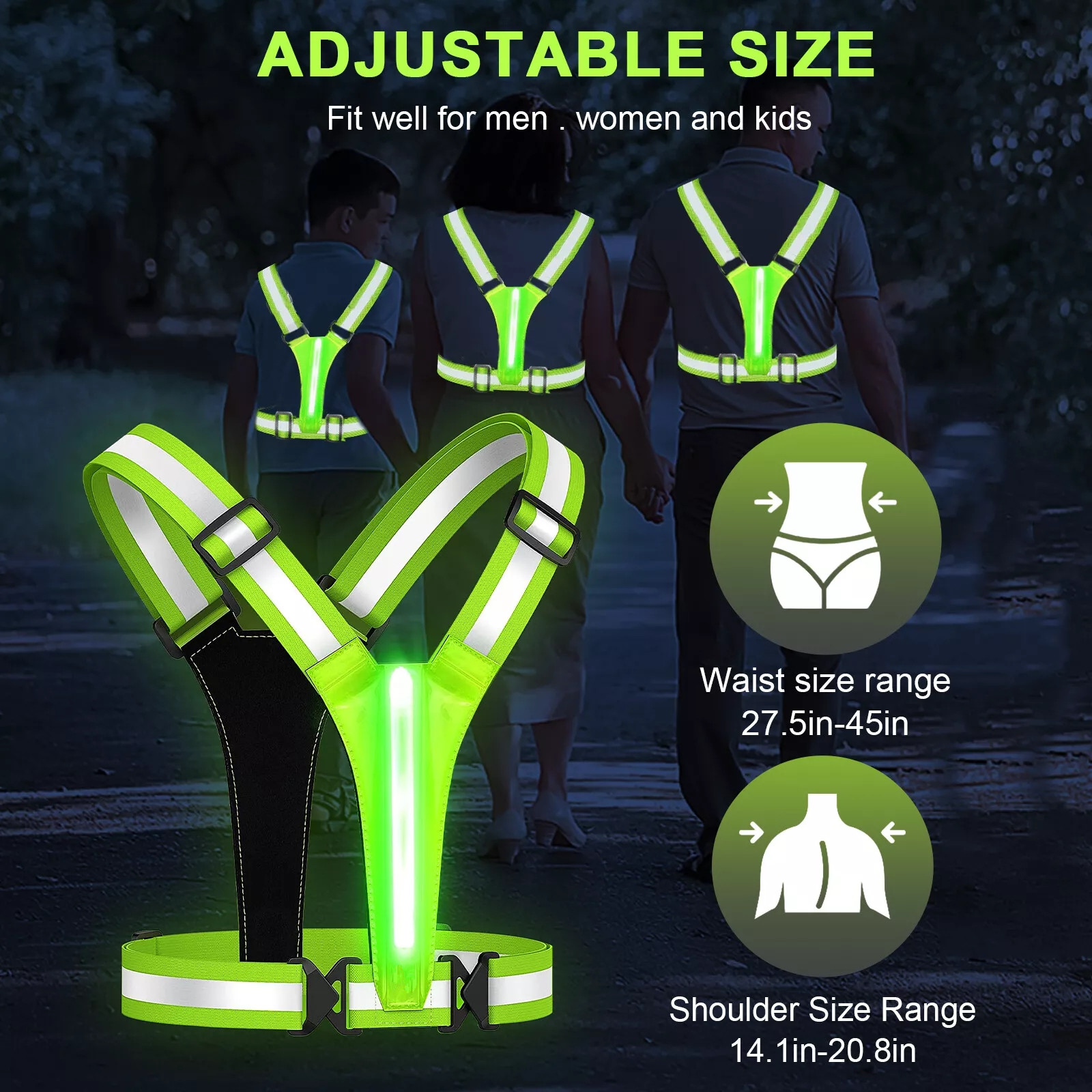 Unbranded Practical USB Charging Safety LED Reflective Running Vest Light Waist/Shoulder