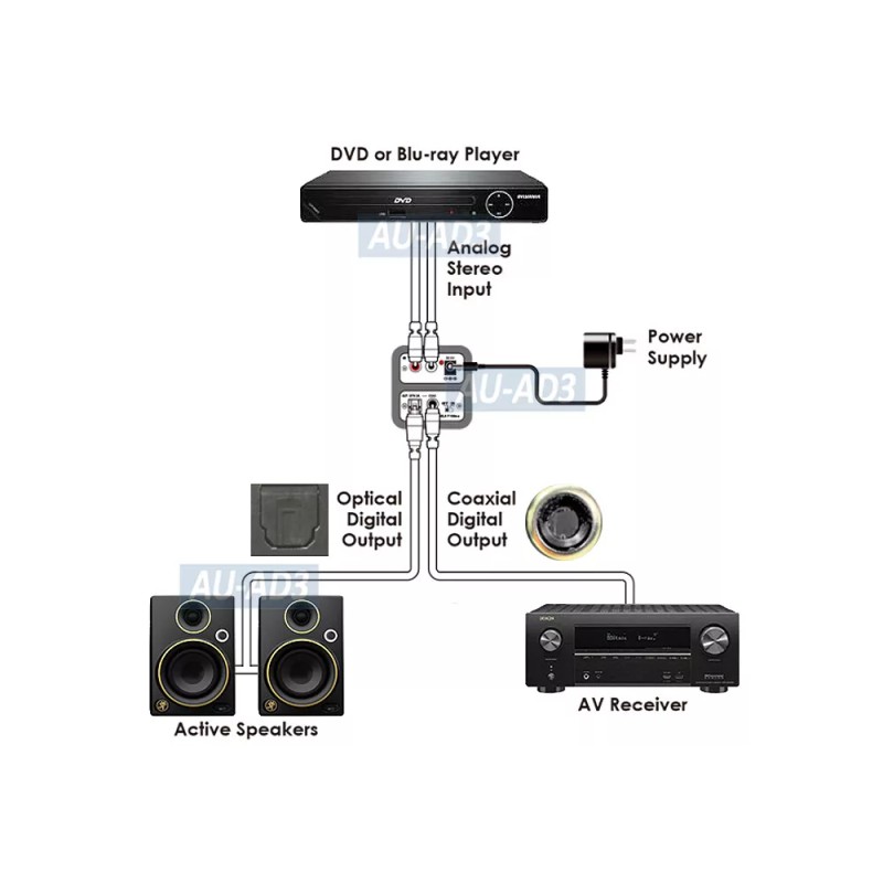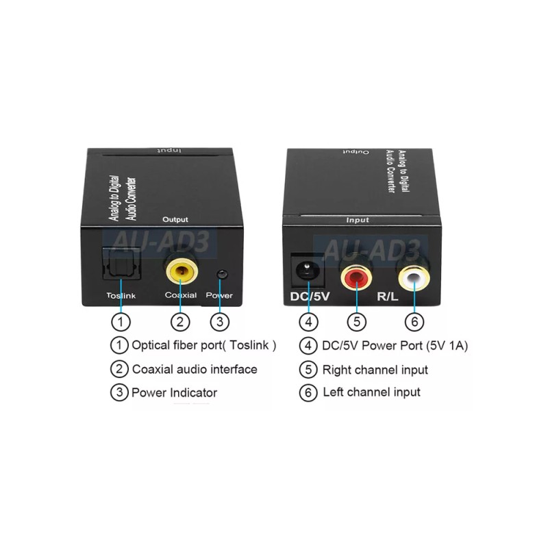 A great ADC unit for converting from analog audio devices like DVD player, iPod/MP3, computer to digital audio for audio receiver, amplifier, home theater system, speaker and other receiving devices.