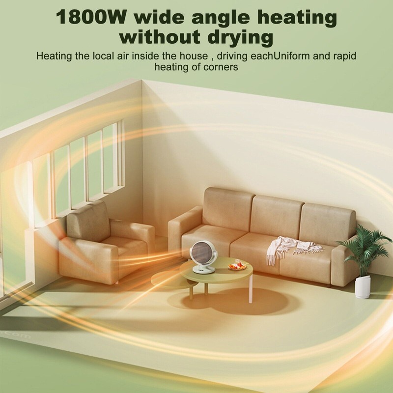 2. Automatic Shaking Head: Experience large-angle, automatic rotating for efficient indoor circulation heating. The heater rotates 90 degrees automatically and can be manually adjusted up and down by 180 degrees.
