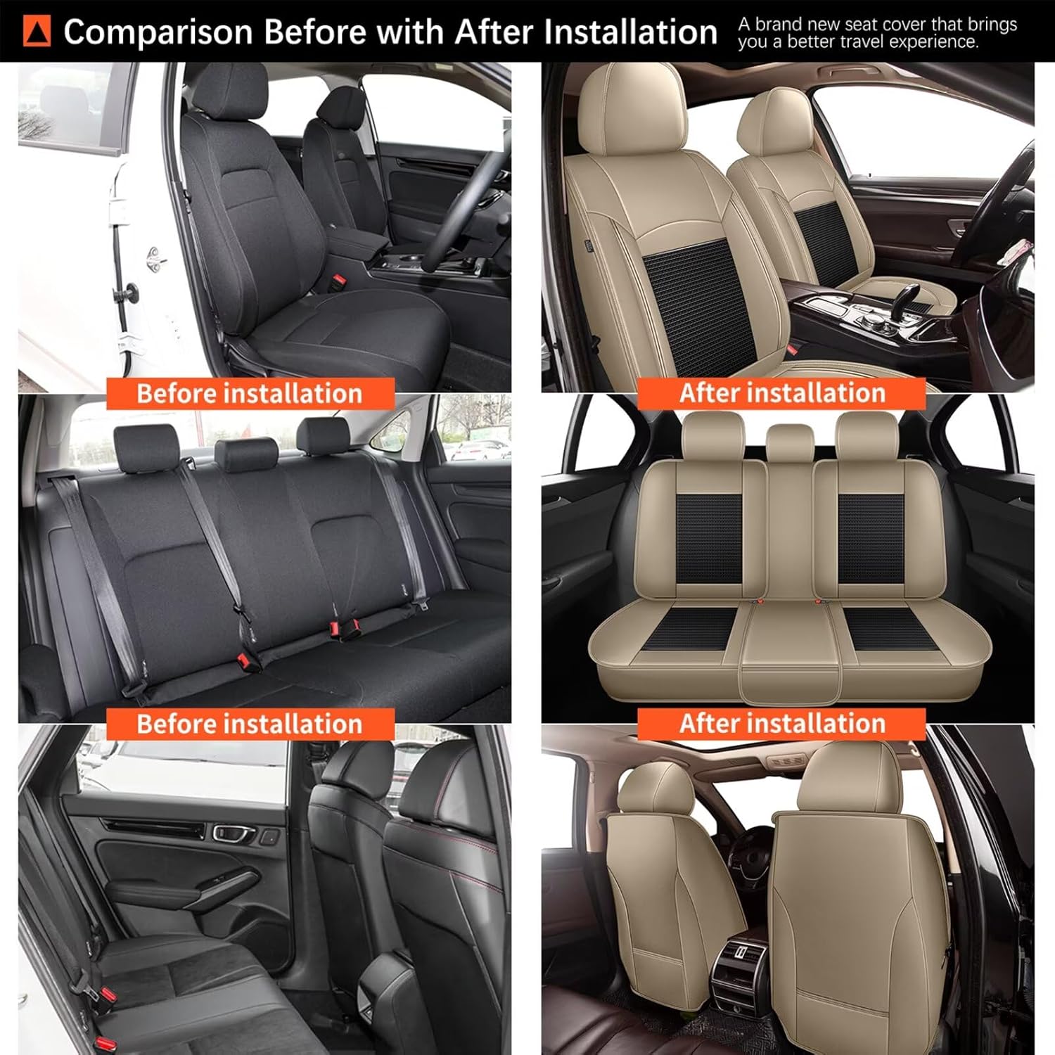❤ Material: Premium faux leather is durable, breathable, comfortable and has good waterproof. The interior of the seat cover is filled with sponge, the appropriate thickness allows you to sit for a long time without getting tired.