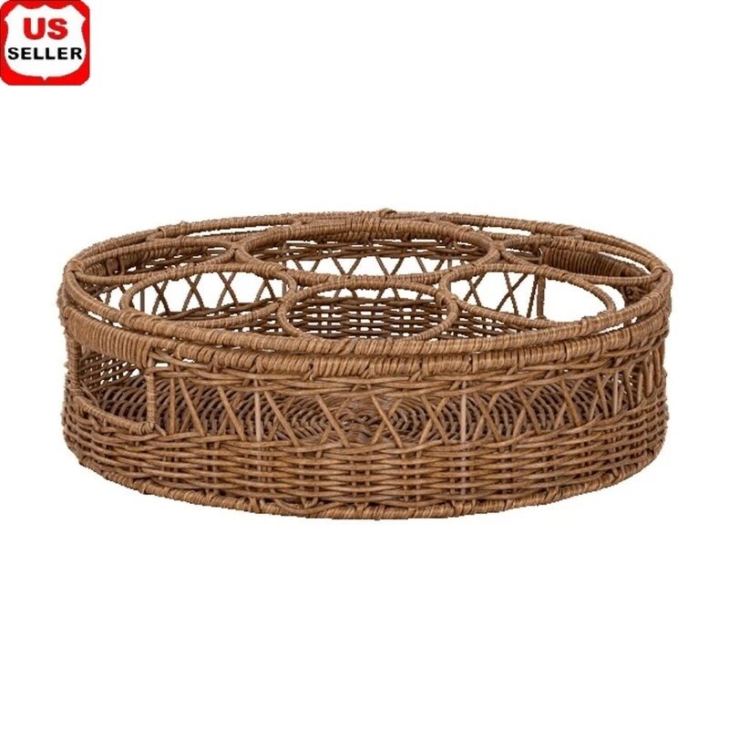 Unbranded Rattan Beverage Tray 9 Compartment Caddy Lightweight Indoor Outdoor Use