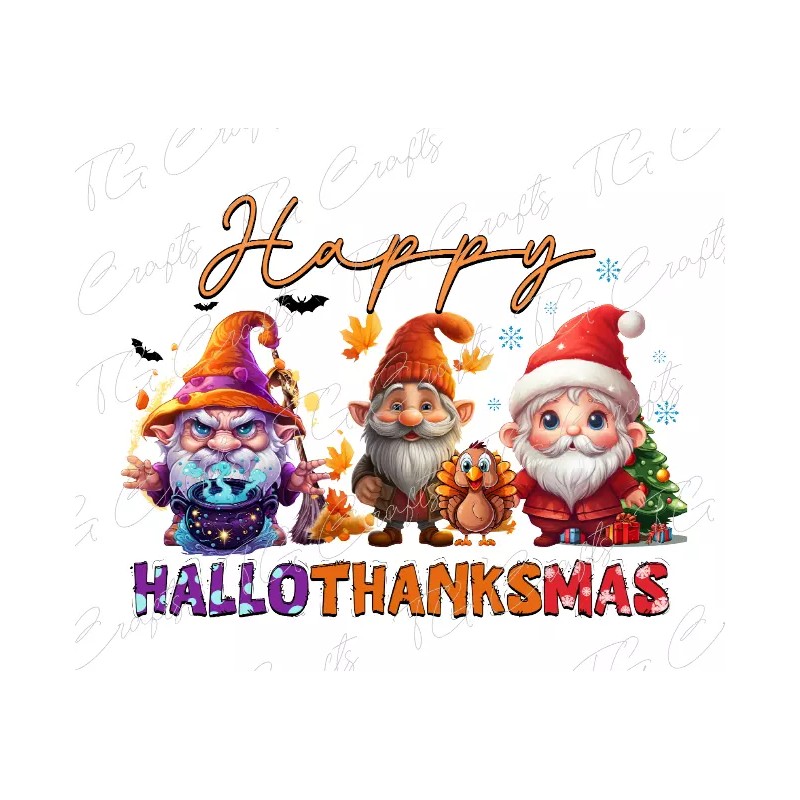 Unbranded READY TO PRESS sublimation transfer - Happy Hallothanksmas gnomes
