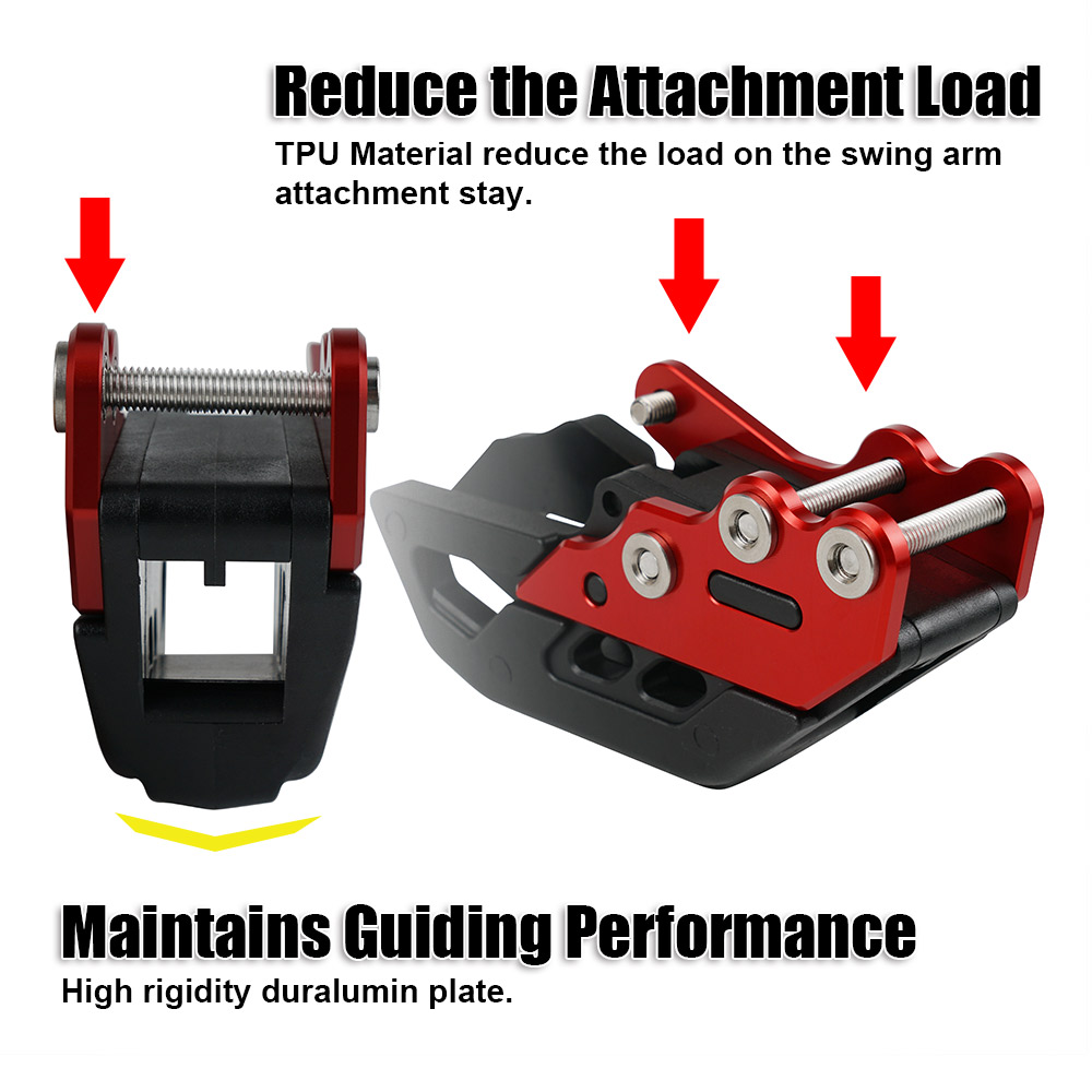-- Chain guide composed of TPU, excellent in wear resistance and restorability and duralumin plate with CNC processing.