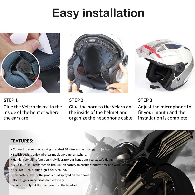 Unbranded Rechargeable Bluetooth 5.0 M8 Motorbike Helmet Headphone Stereo Headset with Mic