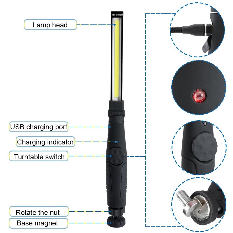 Size:37.5x3.3x2.1cm (Length*Dia of Magnet Base*Width of Light Head)