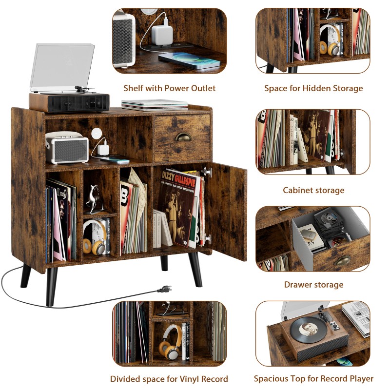 - 【Adequate storage space】The 31.4'' L x 15.7'' W x 31.5'' H inch has a large storage space, The vinyl record player holder can hold up 200 vinyl albums,Partitioned Design: Specifically designed to accommodate the size of vinyl records, allowing you to neatly organize your beloved records collection. ensuring a neat and organized storage solution;Privacy Room: Comes with 1 drawer and 1 cabinet, providing added privacy without the clutter often found in fully open designs.