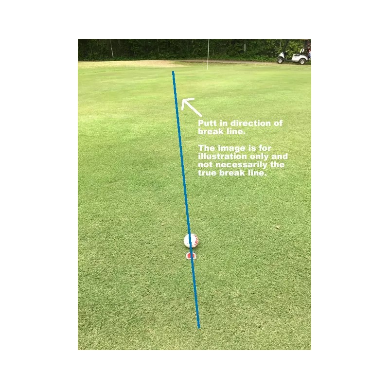 - Place your golf ball directly in front of the tip of the golf ball marker then remove the golf ball marker. You can now make your putt in the direction of the line break whether it is a straight putt or slightly to the left/right based on what you saw against the golf ball marker.