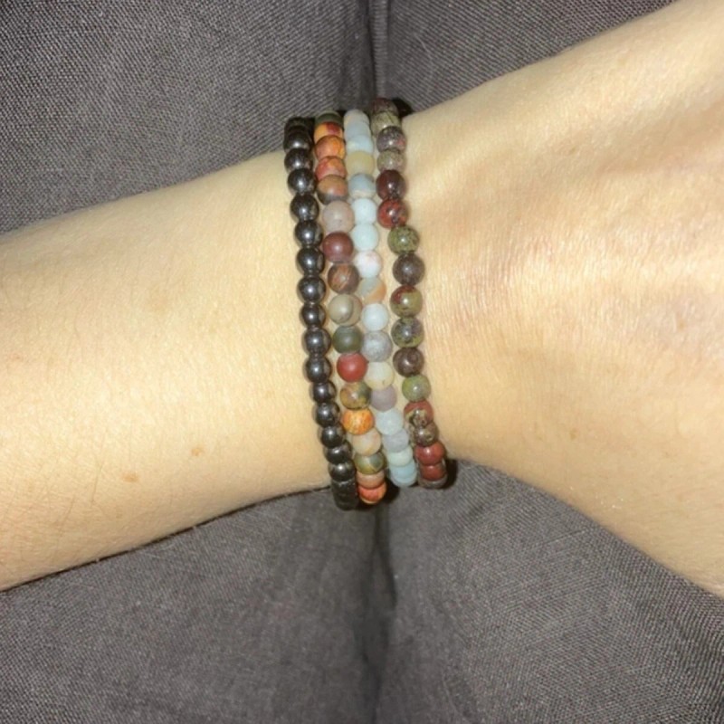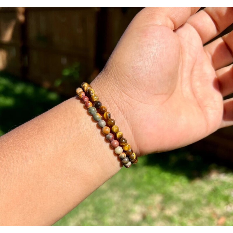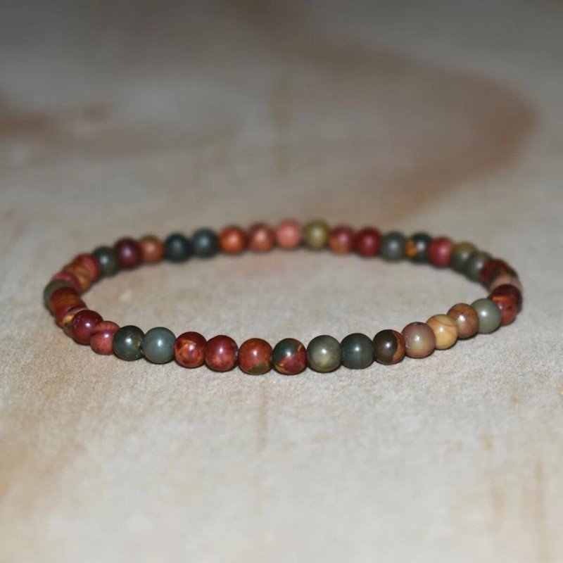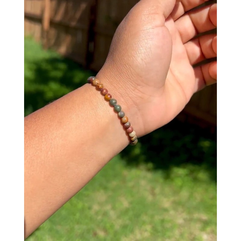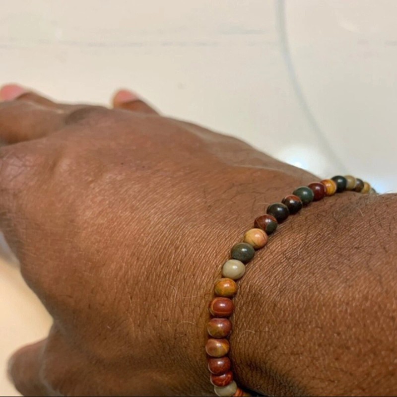 Unbranded Red Creek Jasper Crystal Gemstone Stretch Dainty Bracelet Minimalist 4mm Beads