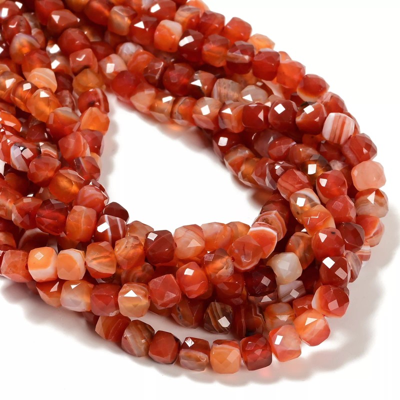 Unbranded Red Stripe Agate Faceted Cube Beads Size 7mm 15.5'' Strand