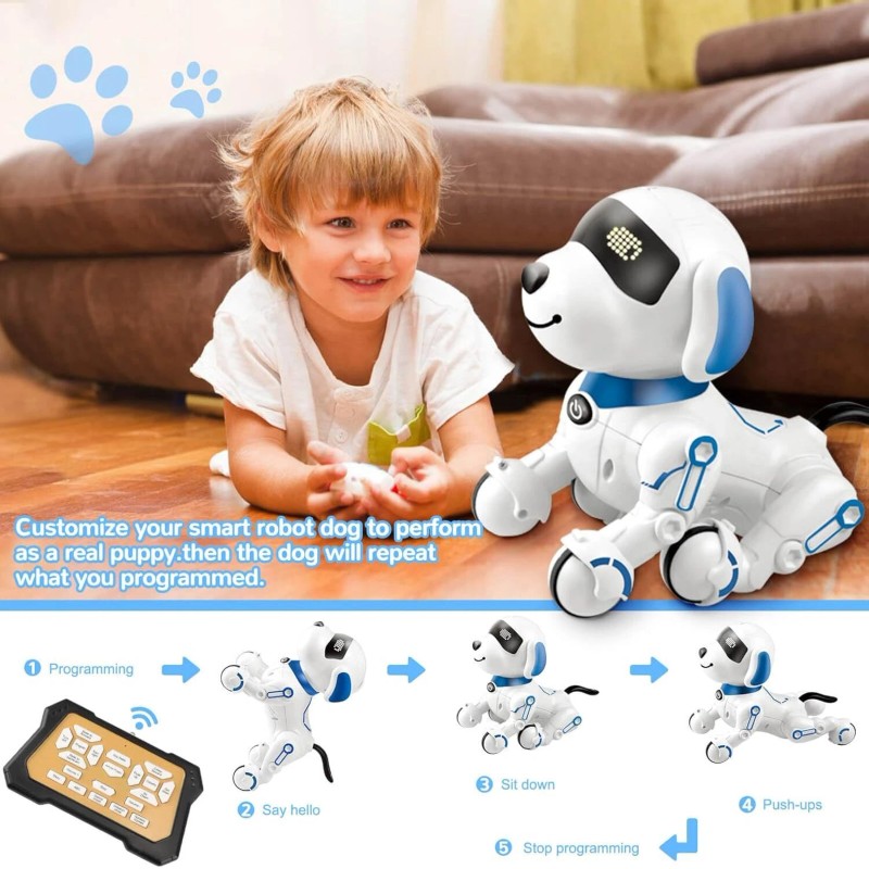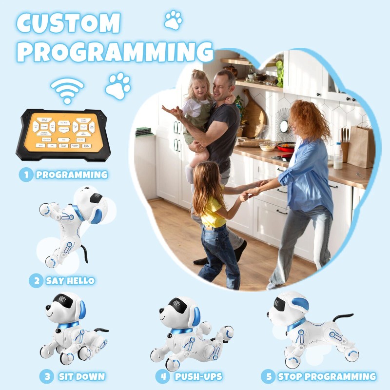 Free Programming: Use the programming key on the remote to let your child create a sequence of actions for the robot dog. Press the buttons for the desired actions, and the robot dog will perform them in order, boosting creativity and logical thinking