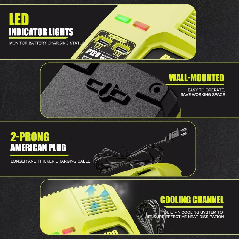 Replacement for Ryobi 18V One+ Battery Charger Station : P135 , P117 , P118 , P119 , P125 , P118B
