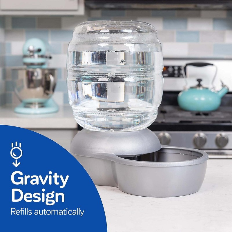 Unbranded Replendish Gravity Pet Waterer with Microban for Cats and Dogs, 0.5 Gallon, Gray