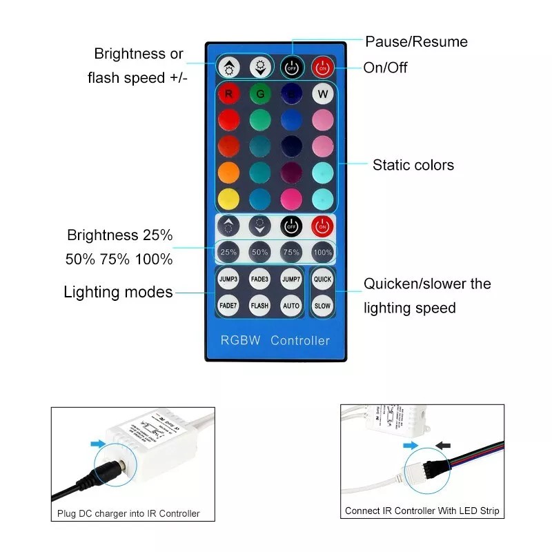 - 【RGBW LED Strip Remote Controller】This SUPERNIGHT remote controller with 5-Pin connectors is special for SMD 5050 chips RGBW color strips.