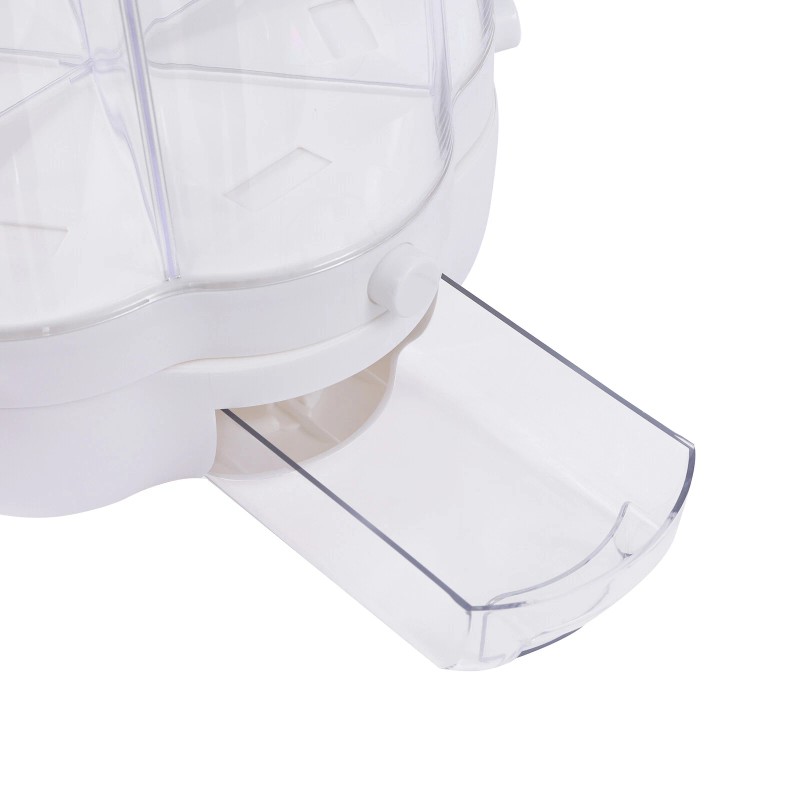 Are you looking for a way to get your dry food quickly? Or are you bothered by the dry food scattered around the house? Then try this six-grid rotating rice dispenser. It allows you to sort and store your dry food, while the button under the compartment also allows you to dose and quickly pick up dry food. It will meet your needs and keep your food fresh and tasty!